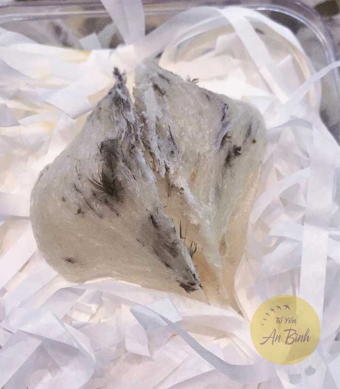 Đặc trưng Tổ yến thô loại tổ già, màu trắng ngà, ít lông, phom tổ đẹp.